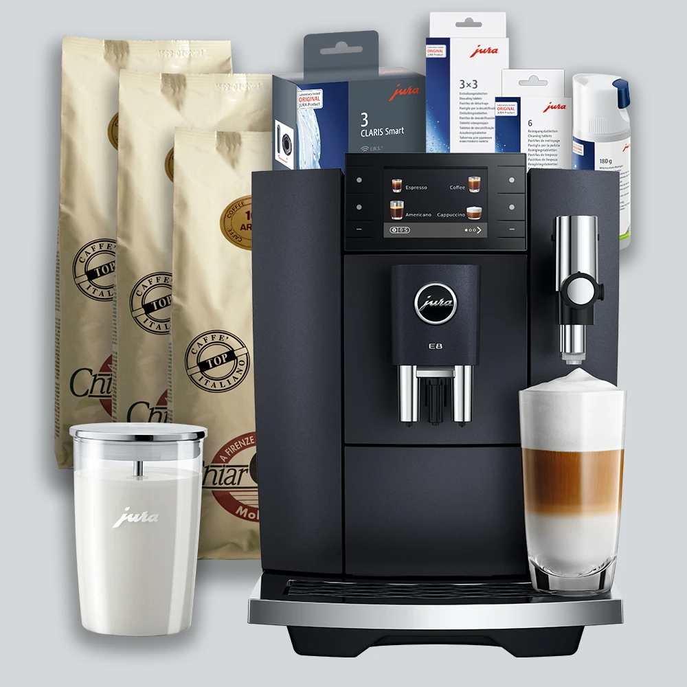 Pakketilbuddet er baseret på Jura E8 (ED) Cosmic Black. Her kan du læse den fulde beskrivelse af selve maskinen.