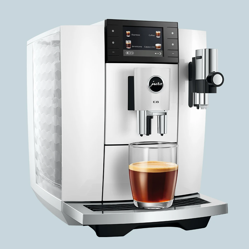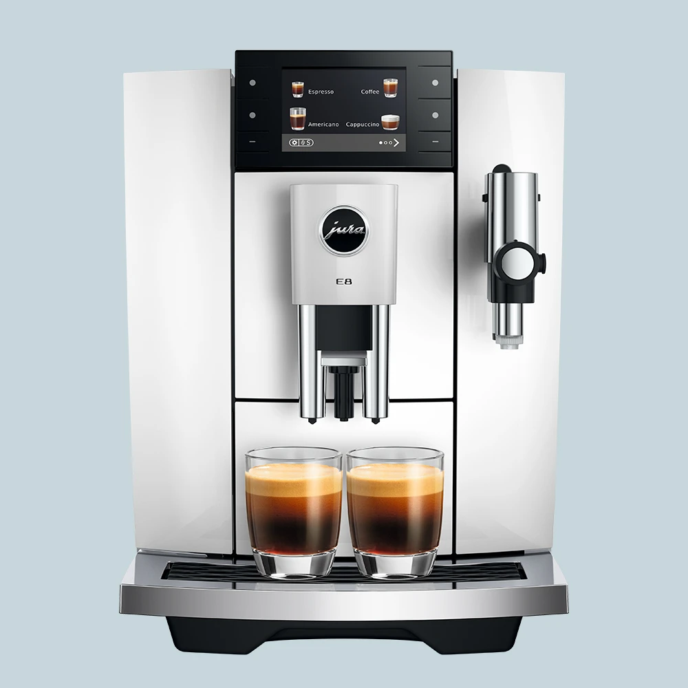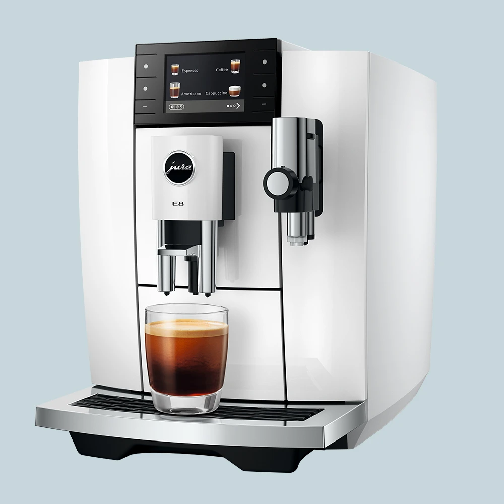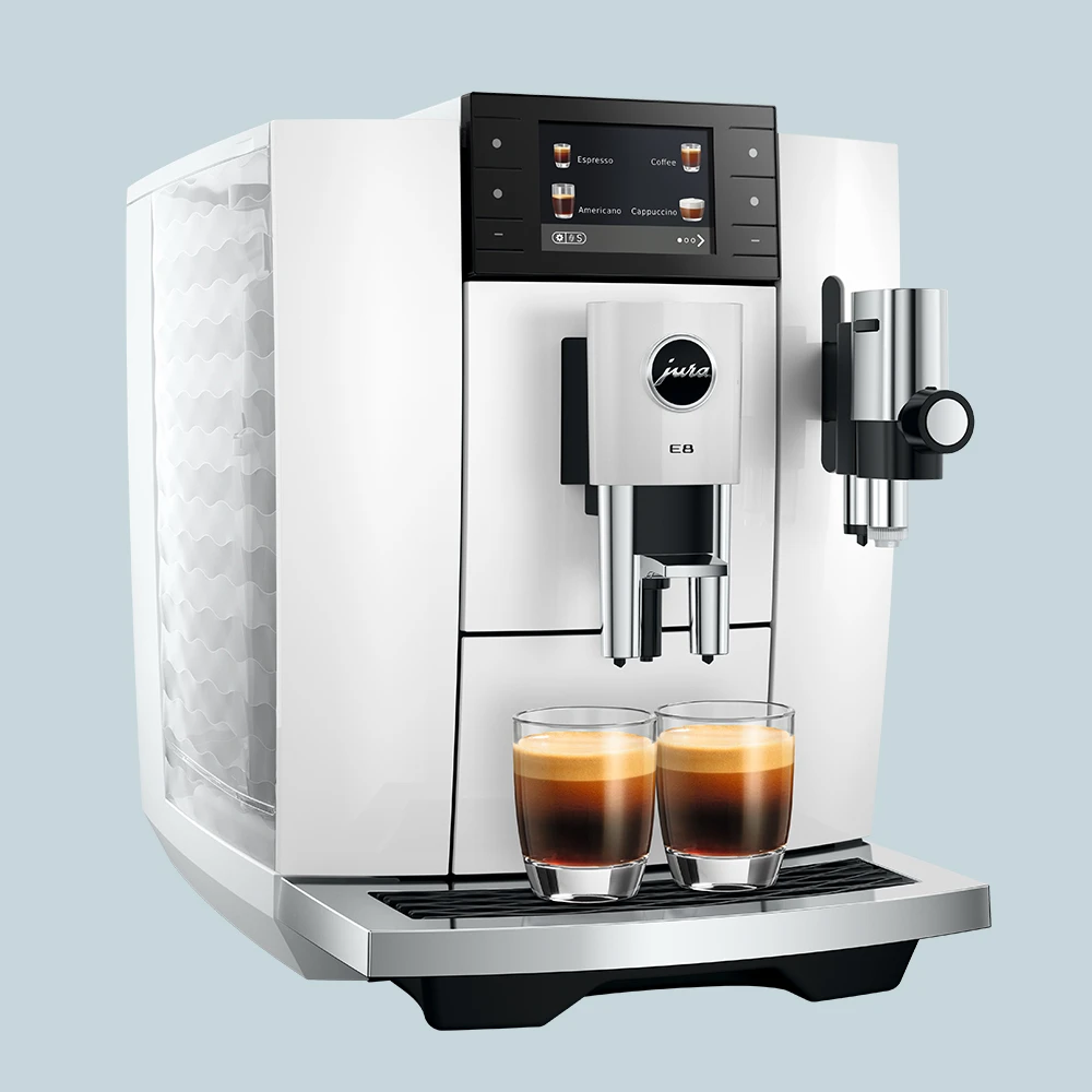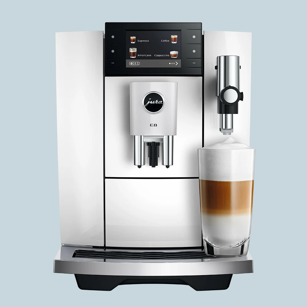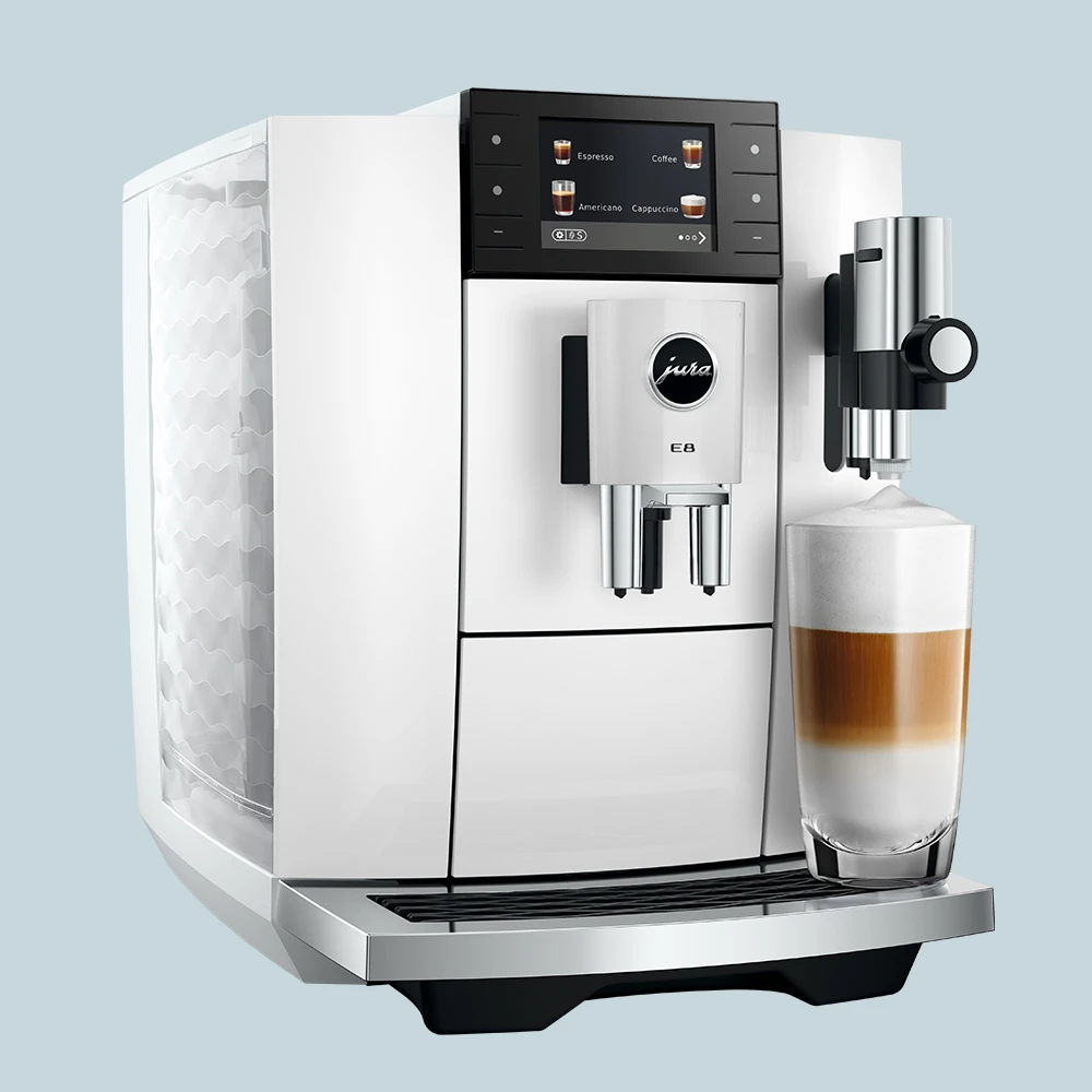 Jura E8 (ED) Piano White er et oplagt valg til dig, der ønsker velsmagende kaffe på hele bønner og frisk mælk – nemt, hurtigt og med stabilt resultat.