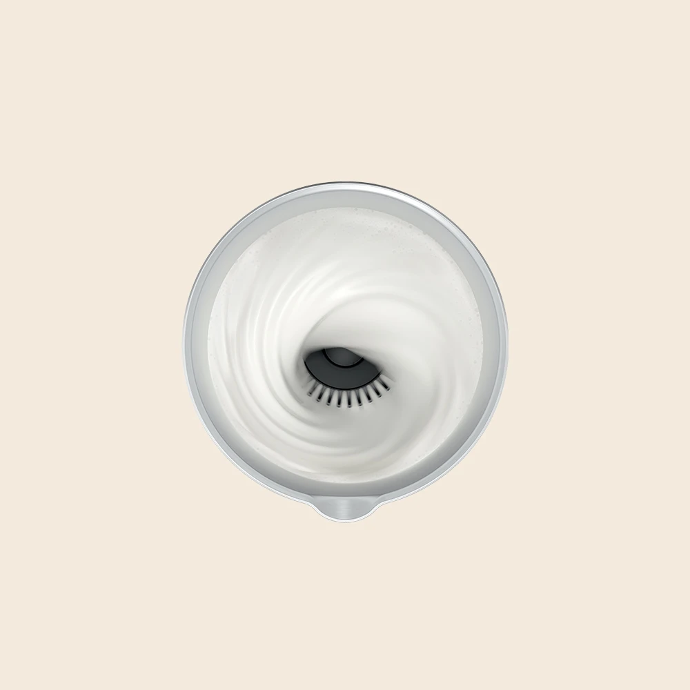 Mælkeskummeren er let at rengøre og klar til brug igen på få minutter. De enkelte dele skylles nemt, og maskinen kræver ingen kompliceret vedligeholdelse. Det betyder, at du uden besvær kan nyde den dagligt – og vide, at den holder sig i topform.