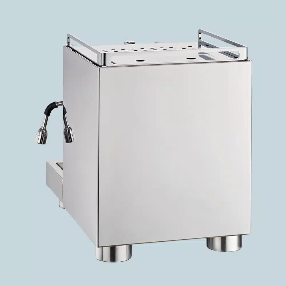 Med sin blanke kromfinish og robuste konstruktion i rustfrit stål fremstår maskinen som et æstetisk og funktionelt ikon, der leverer enestående espressooplevelser.