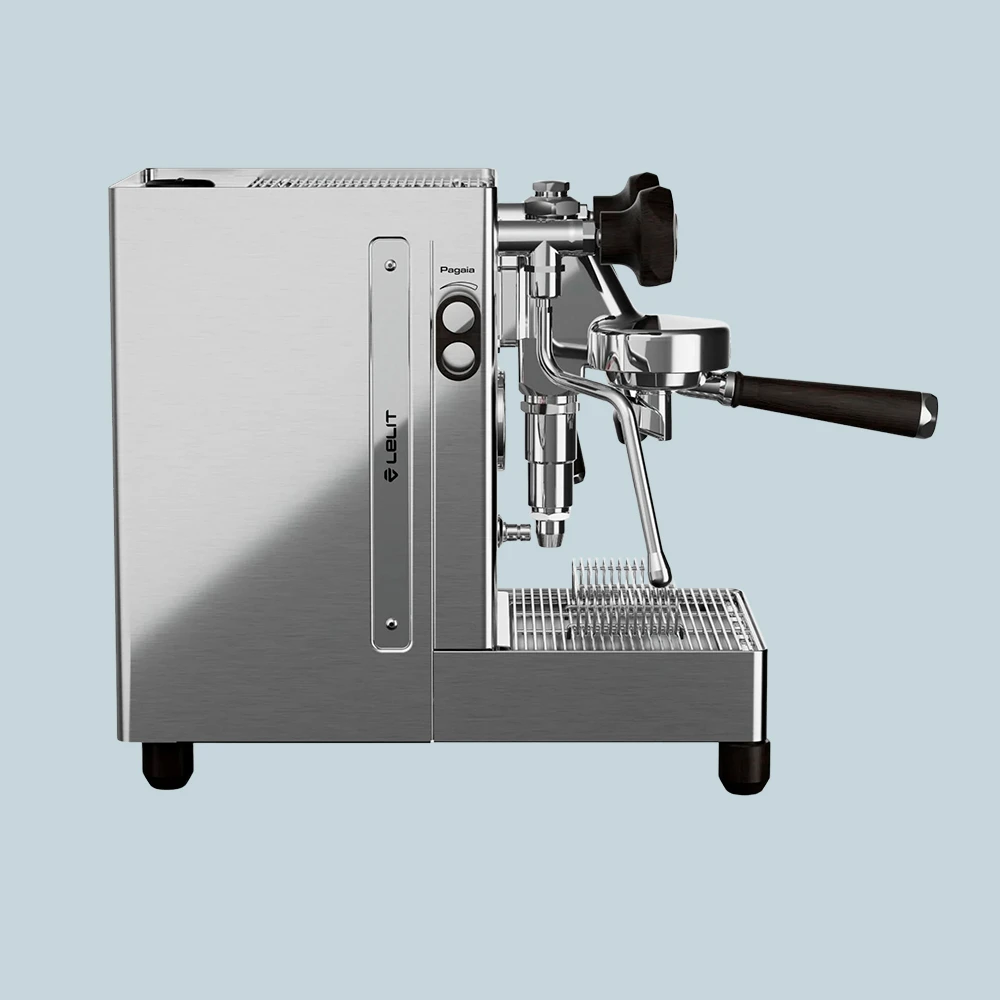 Selve kabinettet har fået et mere strømlinet udtryk, blandt andet med den fastmonterede metalplade med Lelit-logo på venstre side. Derudover går et nyt formsprog igen i hele maskinen, hvor greb, portafilter og lever har samme facetformede design.