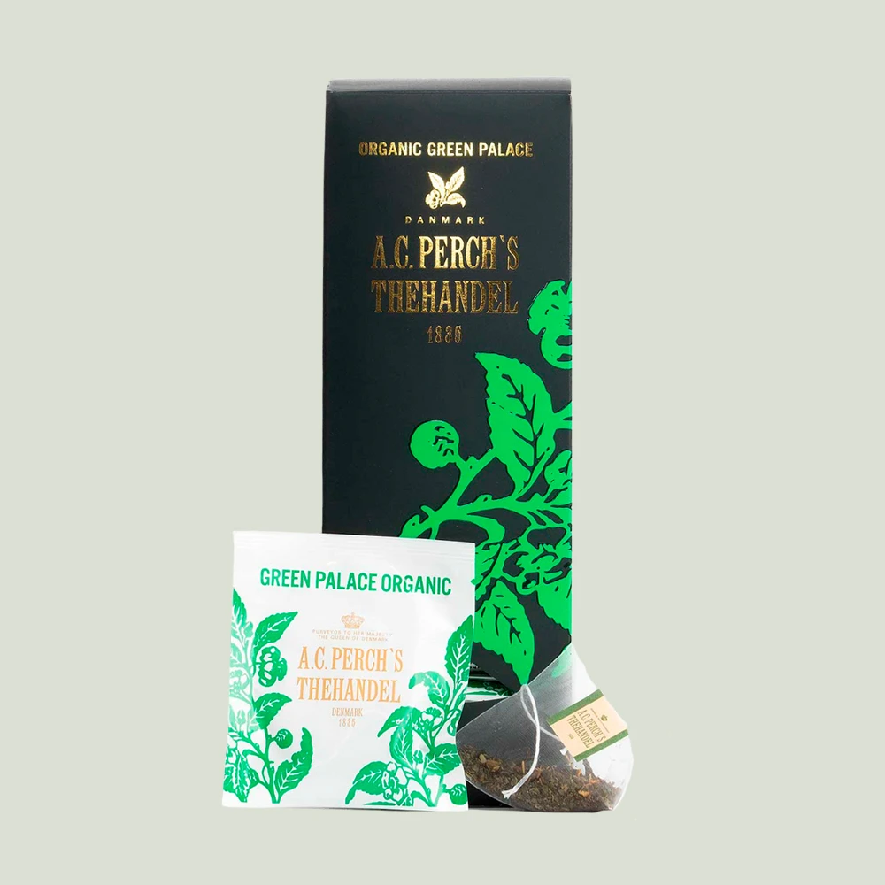 Green Palace fra Perch’s er en økologisk grøn te med en frisk og frugtig smag af mango, appelsin og citron. Teen er baseret på grøn, kinesisk Sencha – en te kendt for sine mørkegrønne, aflange blade og sin milde, let sødlige smag. Selvom Sencha traditionelt forbindes med Japan, er denne variant dyrket og forarbejdet i Kina.