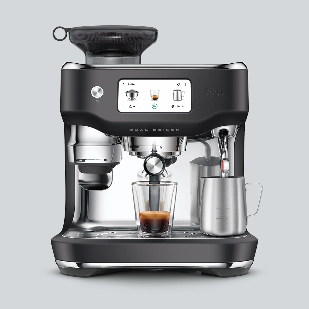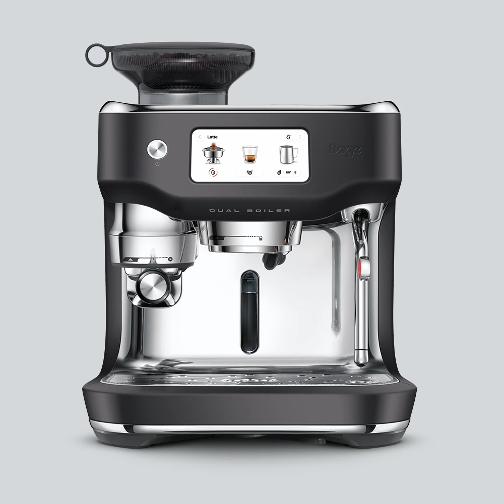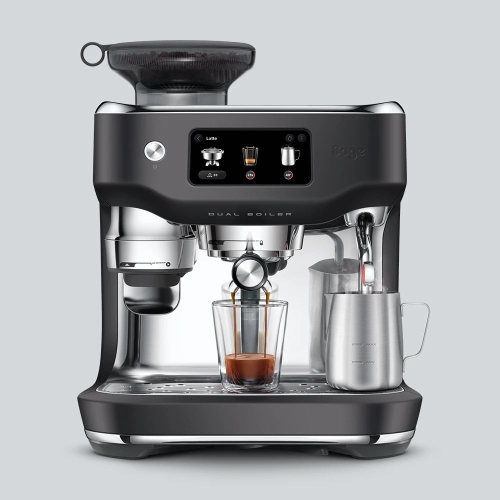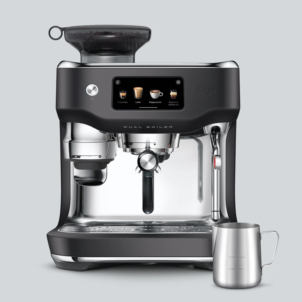 Sage The Oracle Dual Boiler SES995BTR i farven Black Truffle er Sages mest avancerede espressomaskine til hjemmebrug. Maskinen kombinerer to separate kedler, integreret Baratza-kværn samt automatisk dosering og tamping, som tilsammen giver et stabilt og effektivt workflow.