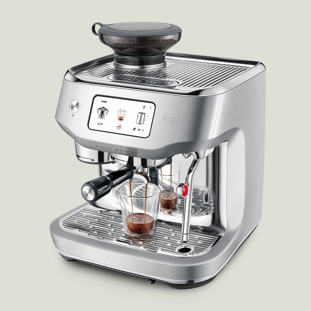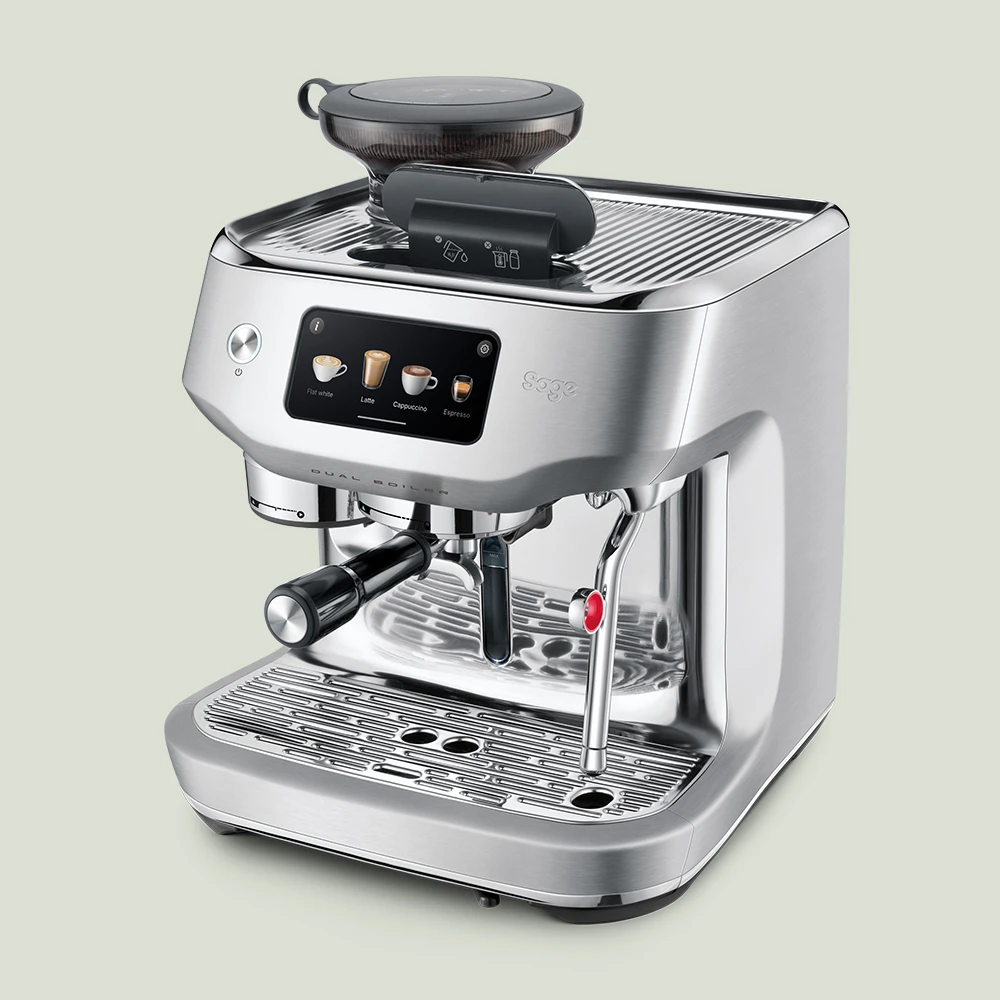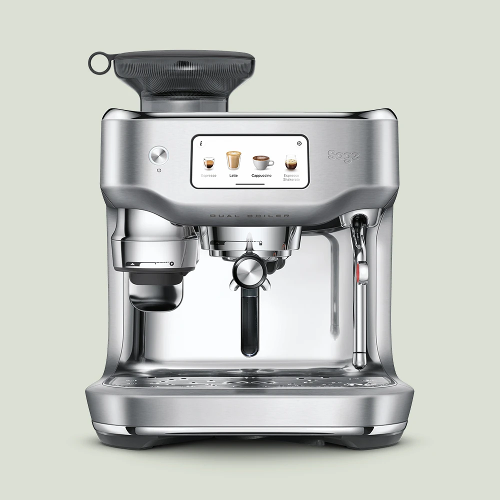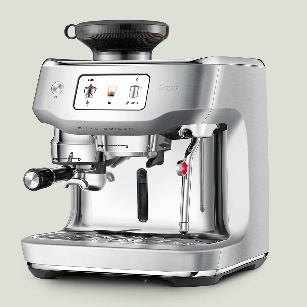 Sage The Oracle Dual Boiler SES995BSS er Sages mest avancerede espressomaskine til hjemmebrug. Maskinen er udstyret med to separate kedler, integreret Baratza-kværn samt automatisk dosering og tamping, som tilsammen giver et effektivt og stabilt workflow.